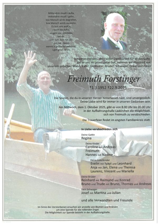 Die Erinnerung an Freimuth wird immer in unseren Herzen bleiben.