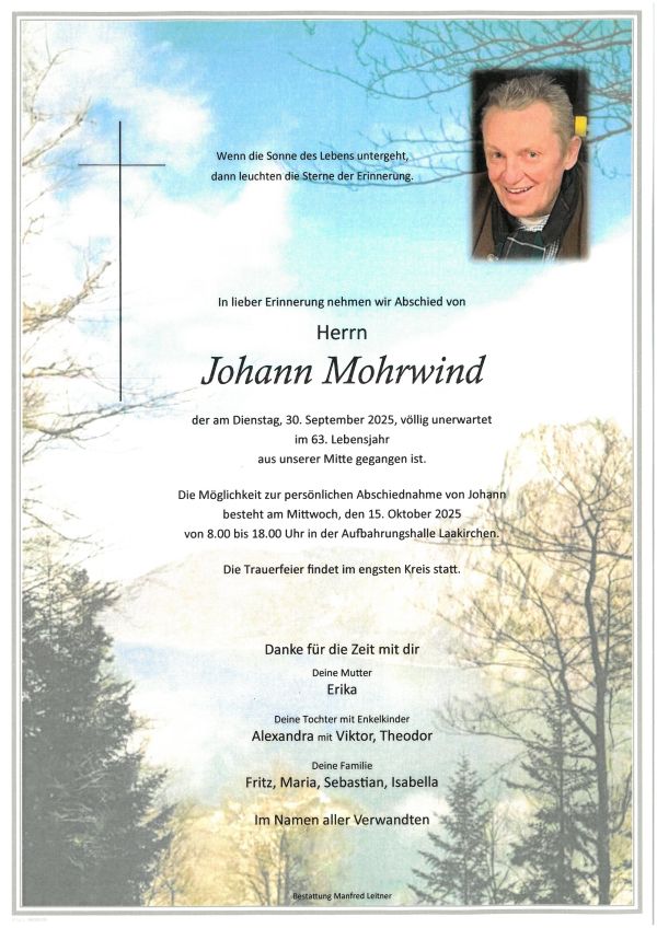 Johann Lackerbauer14. Oktober 2025 um 11:03Permalink Aufrichtige Anteilnahme Johann Lackerbauer Antworten