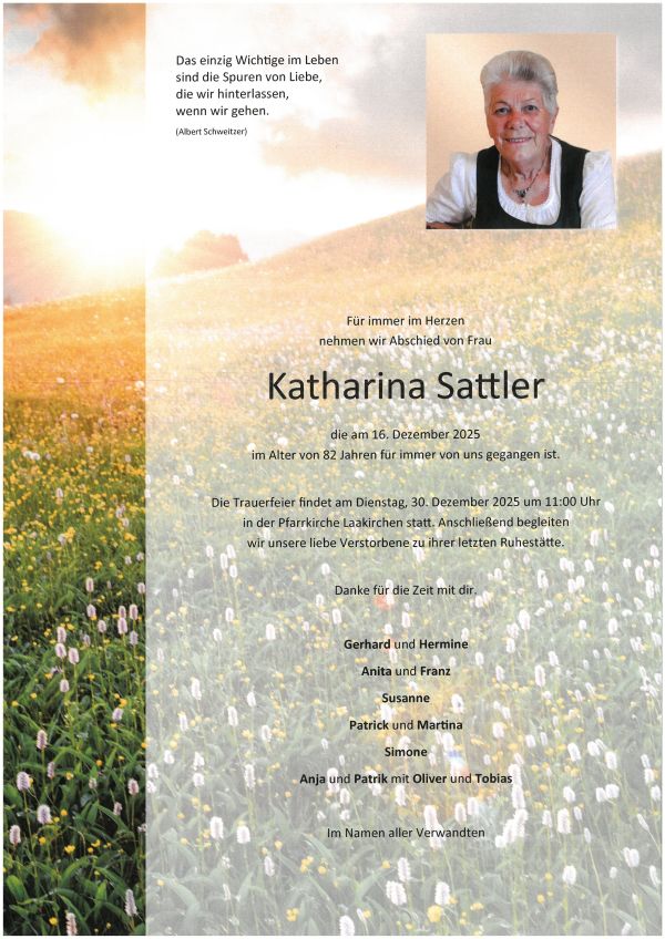 Ein letztes Danke, liebe Katharina, für deine immer helfende Hand beim Pensionistenverband. Unsere aufrichtige Anteilnahme der Trauerfamilie